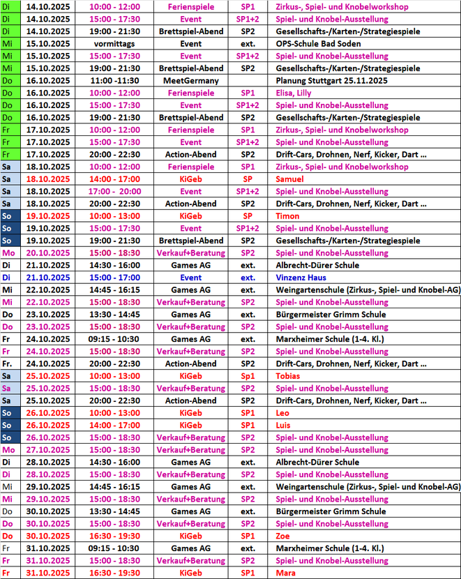 Termine können sich kurzfristig ändern, bitte immer tagesaktuell prüfen
