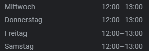 Alle Events nur mit Anmeldung bis 22:00 Uhr am Vortag.